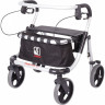 Конструкция ролятора с повышенной грузоподъемностью выполнена из стали с полимерным покрытием, сиденье обшито искусственной кожей. Ролятор оборудован двумя ручными тормозами задних колес c фиксирующей функцией, расположенных на ручках конструкции. Ручки имеют рифленую форму и не скользят в ладонях; регулируются по высоте. Под сиденьем закрепляется вместительная корзина для личных вещей и продуктов. Опору для спины можно отсоединить, если ролятор не используется в качестве стула. Ролятор складывается и не занимает много места дома или при транспортировке.