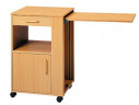Столик прикроватный имеет специальную конструкцию, которая позволяет задвигать нижнюю часть под кровать таким образом, чтобы столешница располагалась над кроватью перед пациентом. Столик имеет поворотную столешницу и регулируется по высоте. Столешница допускает влажную дезинфекцию. Имеются 50 мм колеса.