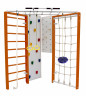 Модель Kampfer Fantastic включает в себя самый обширный набор аксессуаров - турник, шведскую стенку, канатный лаз, скалодром, пегборд, и самые популярное навесное оборудование канат, кольца и лиану. Крепкий металлический турник выдерживает нагрузку до 120 кг, подходит как детям так и взрослым. Навесное оборудование Kampfer на прочных тросах выдерживает нагрузку до 100 кг. Допустимая нагрузка на скалолаз, пегборд, канатный лаз и навесное оборудование 50 кг. Особенностью пристенной шведской стенки Kampfer Fantastic является угловая конструкция, большой двойной скалолаз имеющий 12 пластиковых зацепов. Малышам очень нравится - лазить по скалолазу, забираться вверх по сетке канатного лаза, перебираться по пегборду, висеть на канате и качаться на лиане.